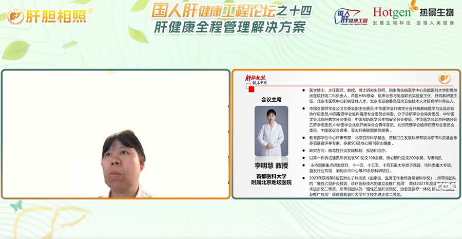 肥胖与代谢相关脂肪性肝病(MAFLD)发病率逐年攀升,已成为全球公共健康挑战,乙肝抗病毒治疗人群难治愈,我国慢性乙型肝炎患者的临床诊治仍存在挑战,HCC早筛早诊早治与AI模型及数字算法,愈来愈普遍地应用于临床实践。基于此,热景生物携手业内肝病领域专家,于肝胆相照平台成功举办了“国人肝健康工程论坛”第十四期活动,围绕热景肝健康全程管理解决方案相关前沿技术和临床应用研究,进行了精彩的分享和讨论。会议由首都医科大学附属北京地坛医院李明慧教授主持。