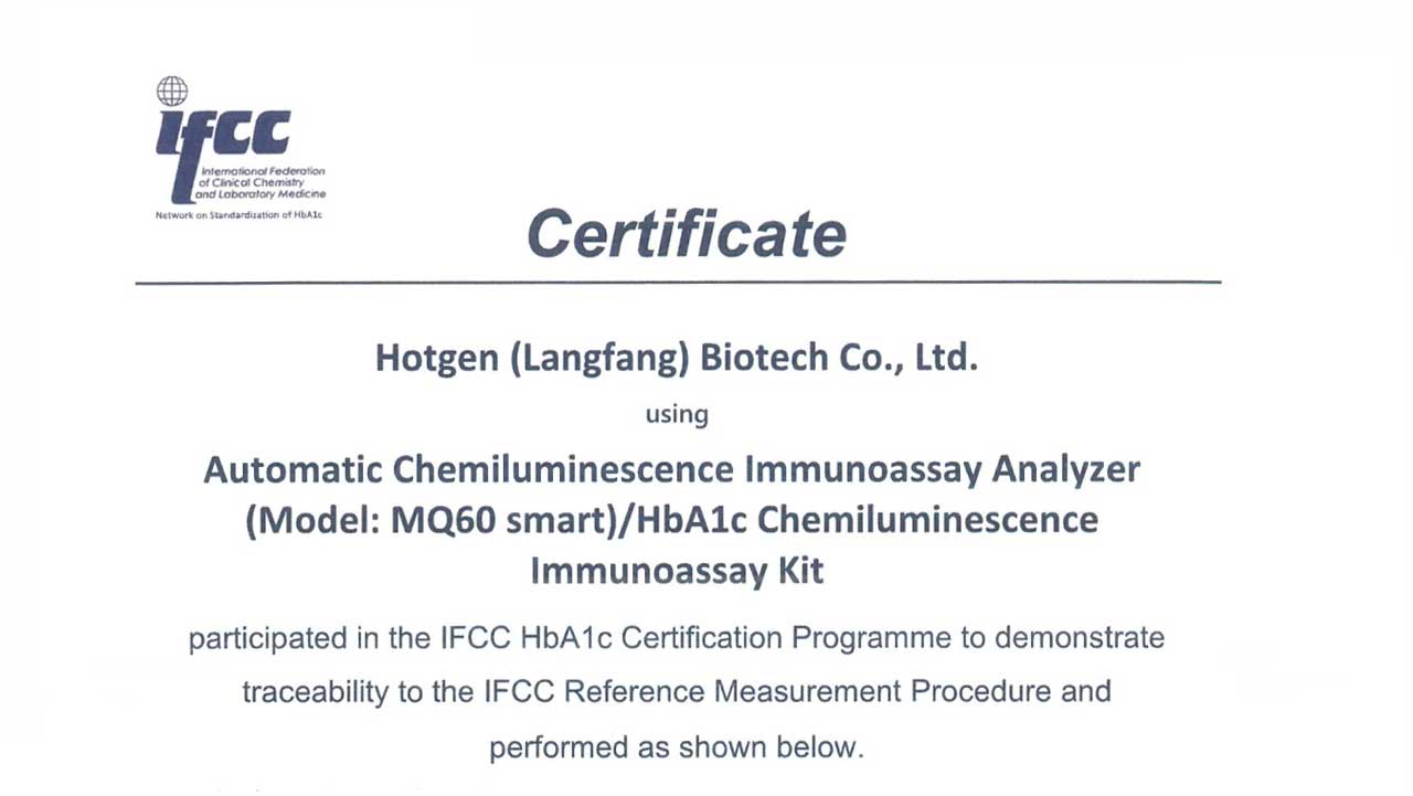 近日,热景生物单人份化学发光免疫分析仪MQ60Smart检测HbA1c获得国际临床化学与实验室医学联合会(IFCC)的认证,确保了其检测结果的标准化、规范化和国际化水平。同时意味着MQ60Smart检...